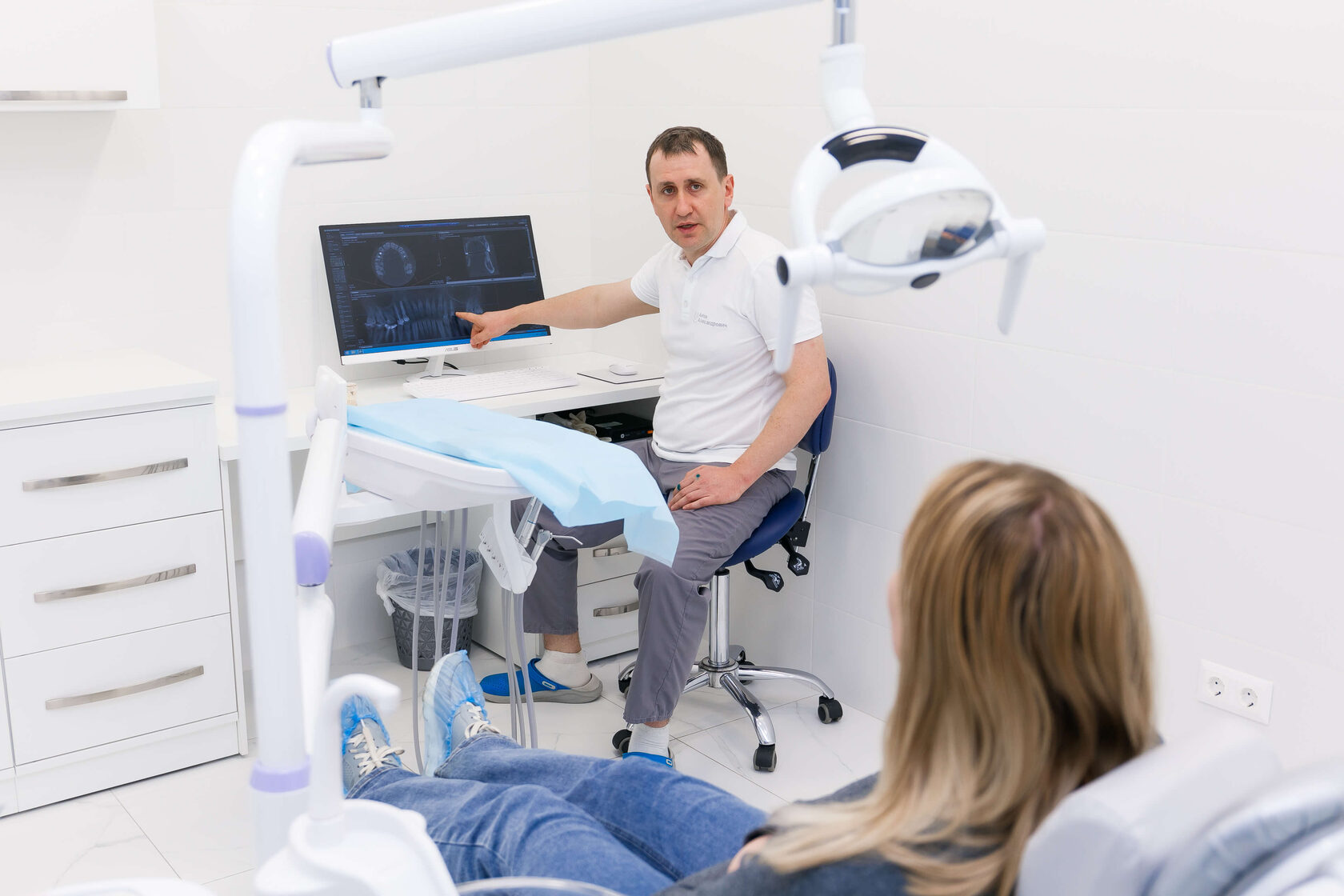 Врач проводит компьютерное исследование Ваших зубов и выявляет все особенности для составления оптимального плана лечения.