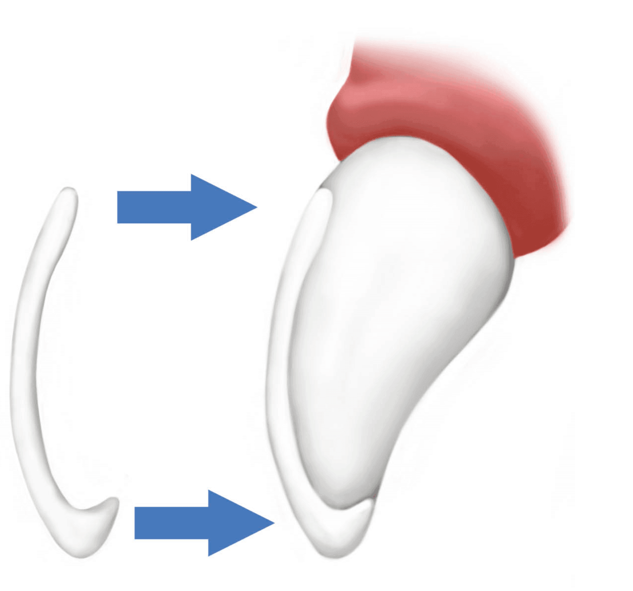 С поверхности зуба убирается 0,3 мм эмали. Толщина зависит от особенностей строения зубов. Для защиты обточенные зубы накрываются временными пластмассовым материалом.